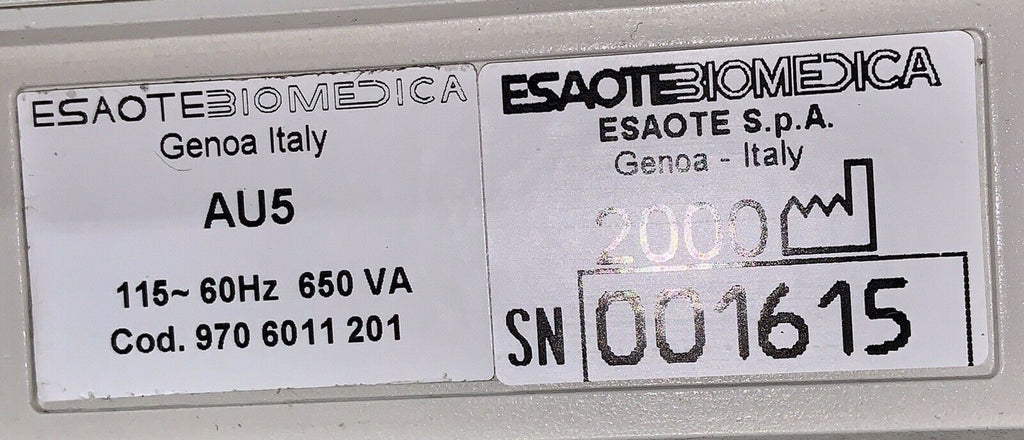ESAOTE AU5 CARDIAC - VASCULAR ULTRASOUND W/2 PROBES, 2 FOOT PEDALS, & CONNECTORS